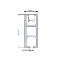 Prostokątny profil karnisza w kolorze czarnym o wymiarach 13,8 mm x 34,0 mm oraz pozostałe elementy wykonane są z wysokiej jakości anodowanego aluminium. Tak starannie wykończona powierzchnia gwarantuje, że produkt nie zmieni koloru co najmniej przez kilkanaście lat użytkowania. Tą samą technologią wykonywane są profile aluminiowe do kabin prysznicowych oraz frontowe panele do wysokiej klasy sprzętu Hi-Fi. Dla uatrakcyjnienia wyglądu i dodania przytulności karnisz ozdobiony jest cienkim paskiem naturalnego drewna.